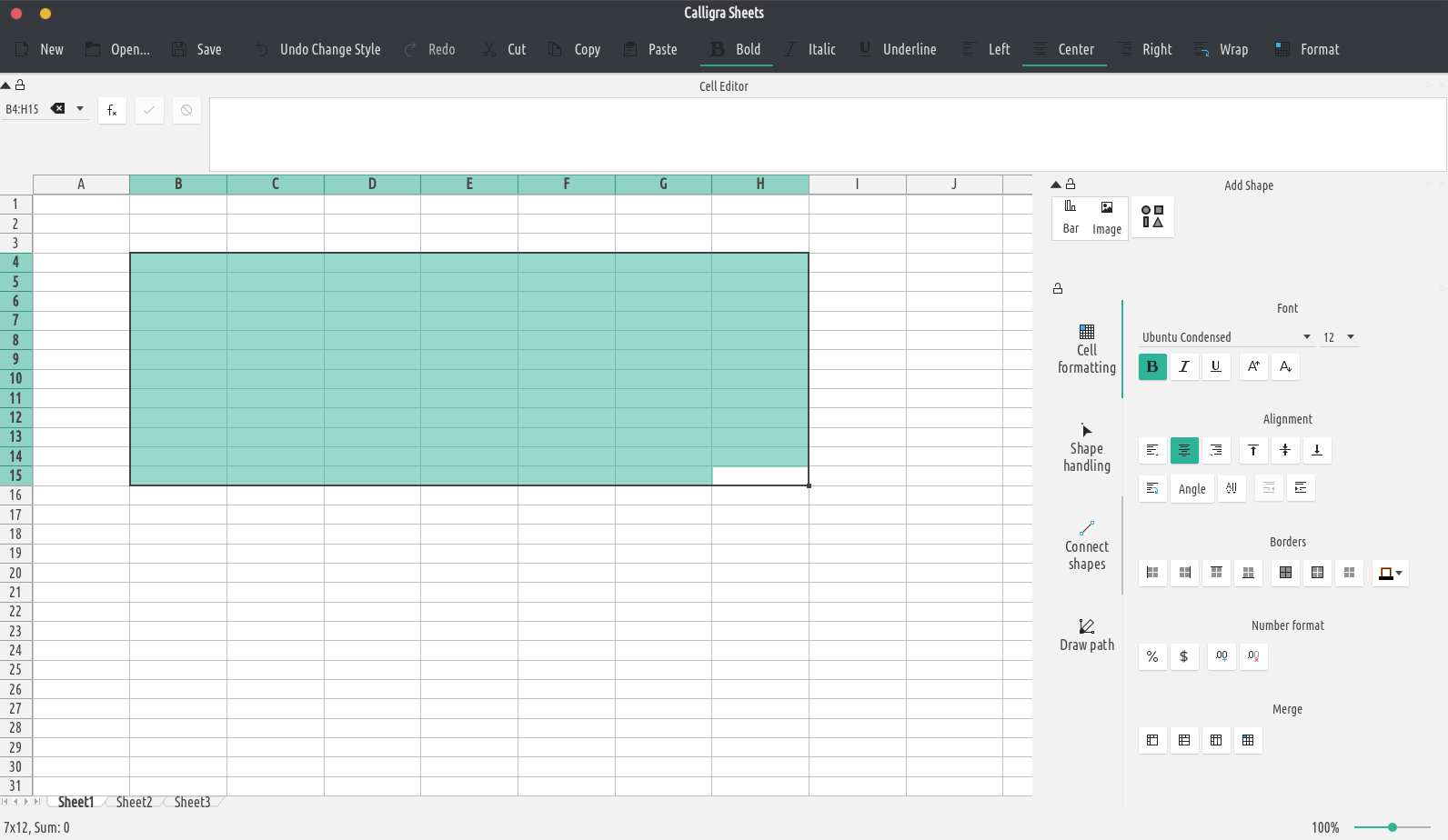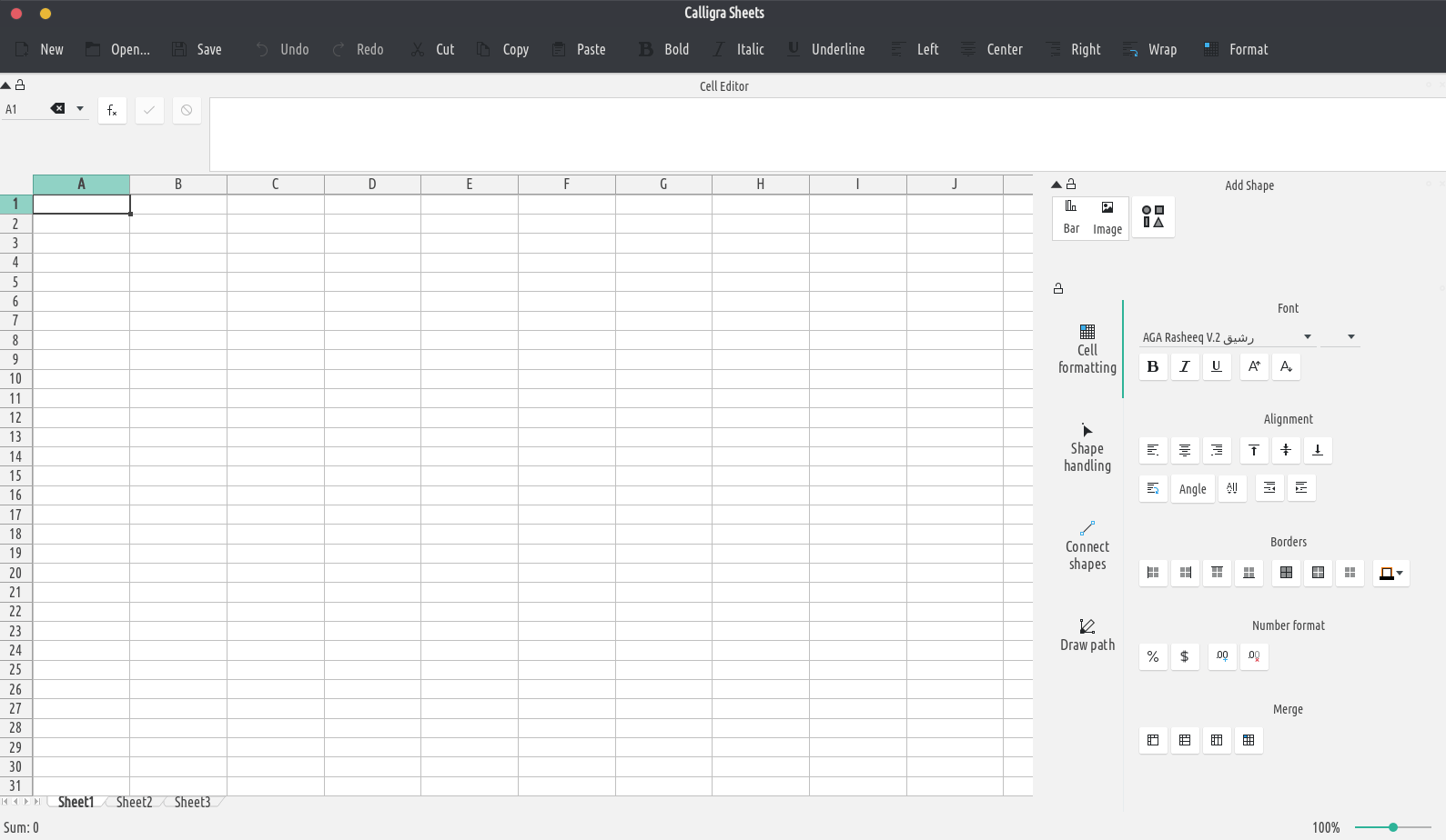 - Tabellenkalkulation: Calligra Sheets ist eine voll ausgestattete Tabellenkalkulationsanwendung. Verwende sie, um schnell Tabellenkalkulationen mit Formeln und Diagrammen zu erstellen, um deine Daten zu berechnen und zu organisieren.