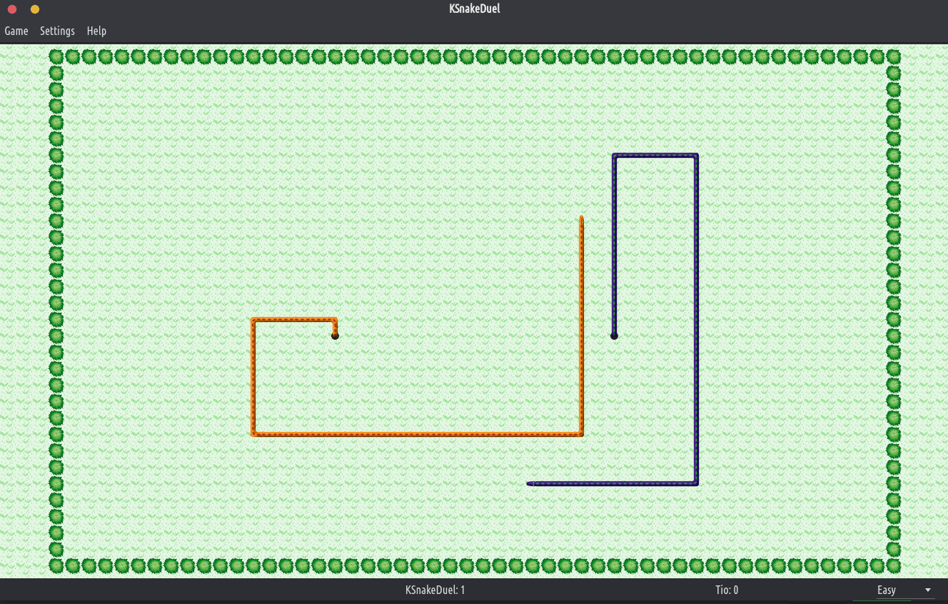 KSnakeDuel ist ein einfacher Tron-Klon. Du kannst KSnakeDuel gegen den Computer oder einen Freund spielen. Das Ziel des Spiels ist es, länger zu leben als der Gegner. Um das zu erreichen, vermeide es, gegen eine Wand, deinen eigenen Schwanz und den deines Gegners zu laufen.