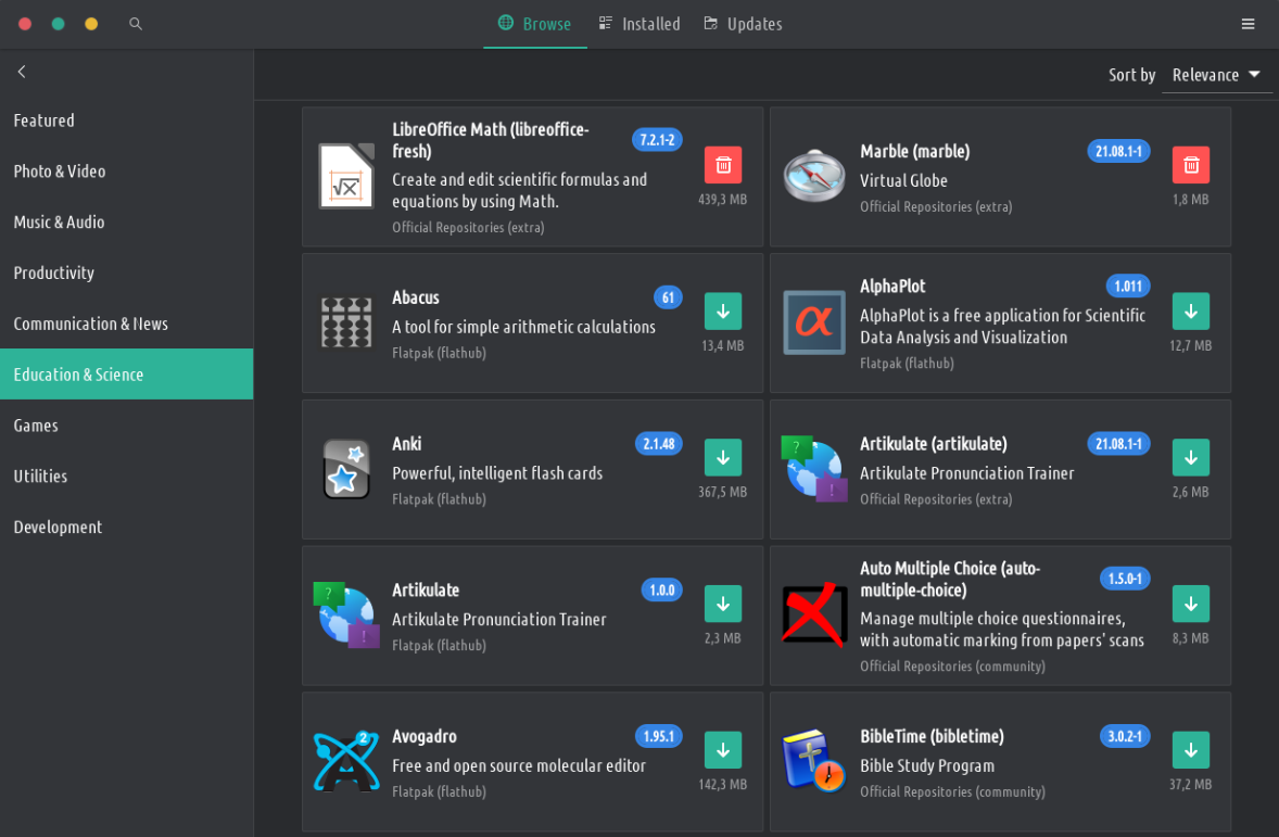 Il n'y a qu'un seul endroit que vous devez utiliser pour installer/supprimer/mettre à jour vos logiciels : "Ajout/Suppression de logiciels". Il possède des catégories et il est très simple à utiliser. Recherchez une application, puis cliquez sur installer. Le système s'assurera de vous avertir lorsqu'une mise à jour est disponible pour une application.